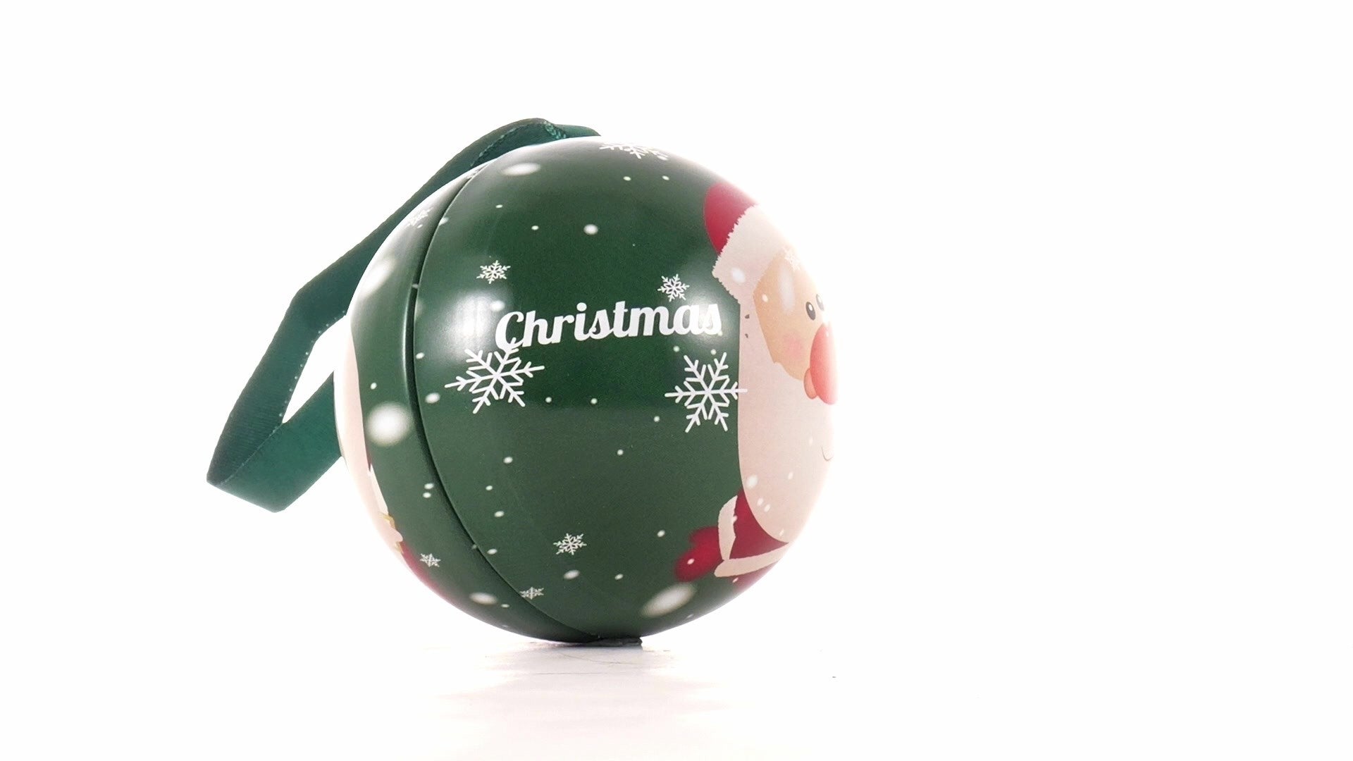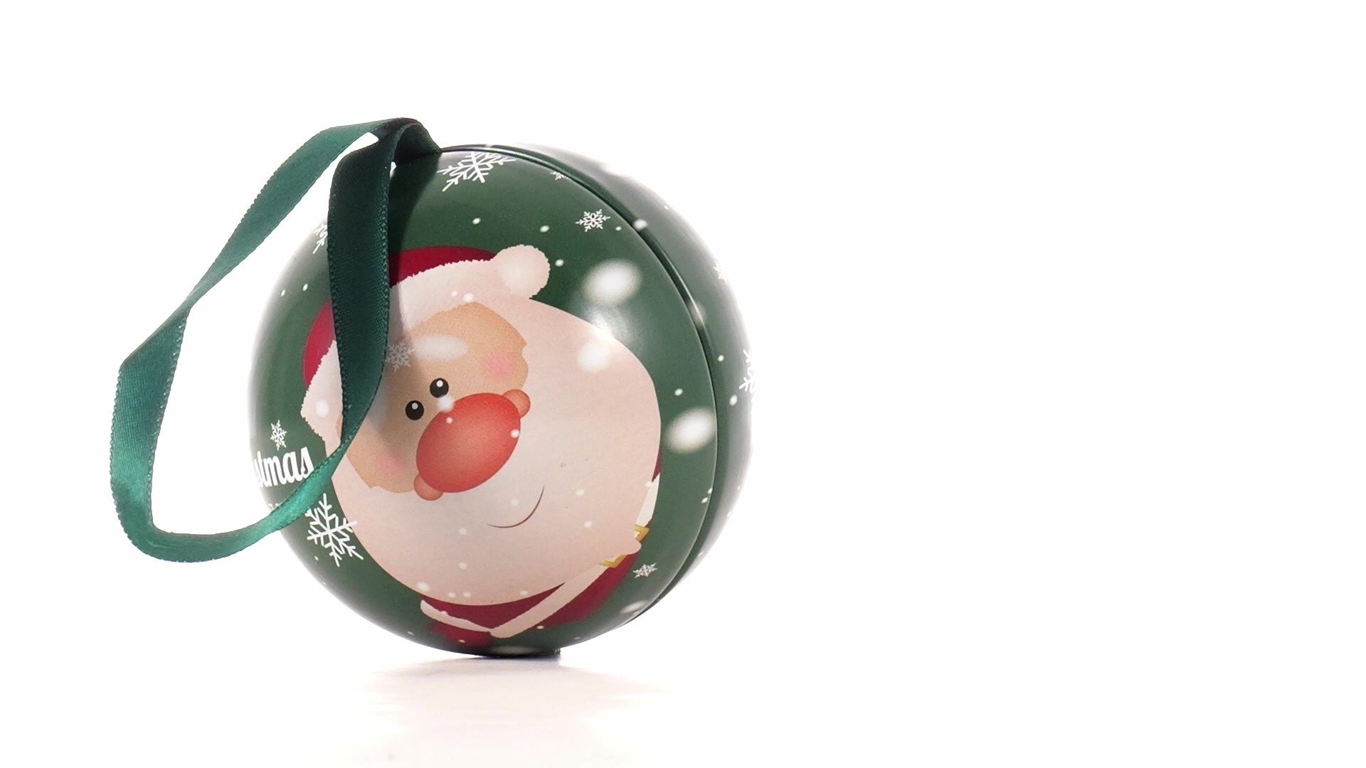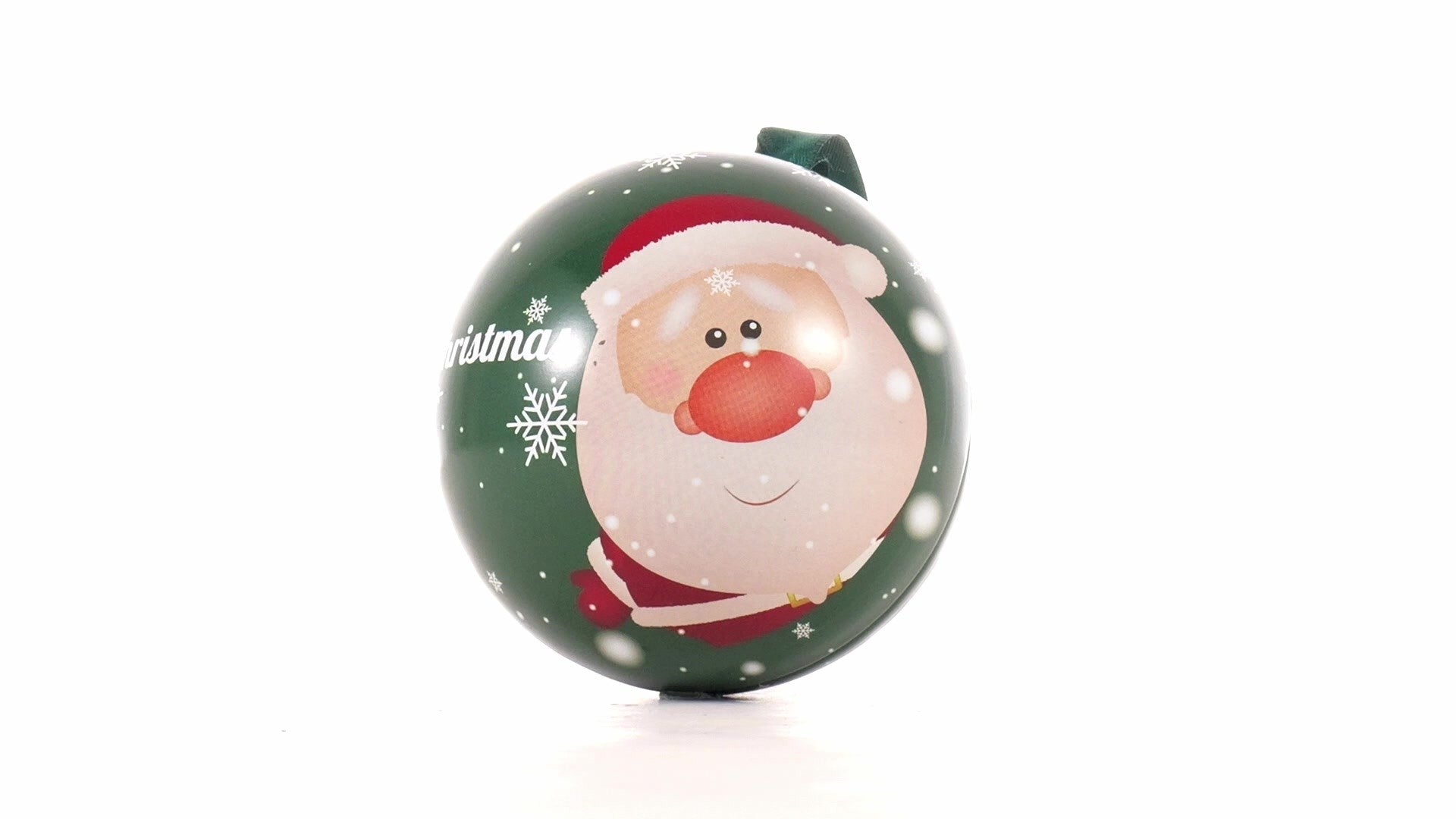 Зелен метален коледен топка с модел Дядо Коледа Ø7 cm