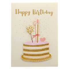 Felicitari vesele și colorate, realizate din hârtie cartonată premium, decorate cu un torturi aniversare cu lumânări, pahare de sampanie și bannere colorate – perfectă pentru a aduce un zâmbet de ziua cuiva drag.
