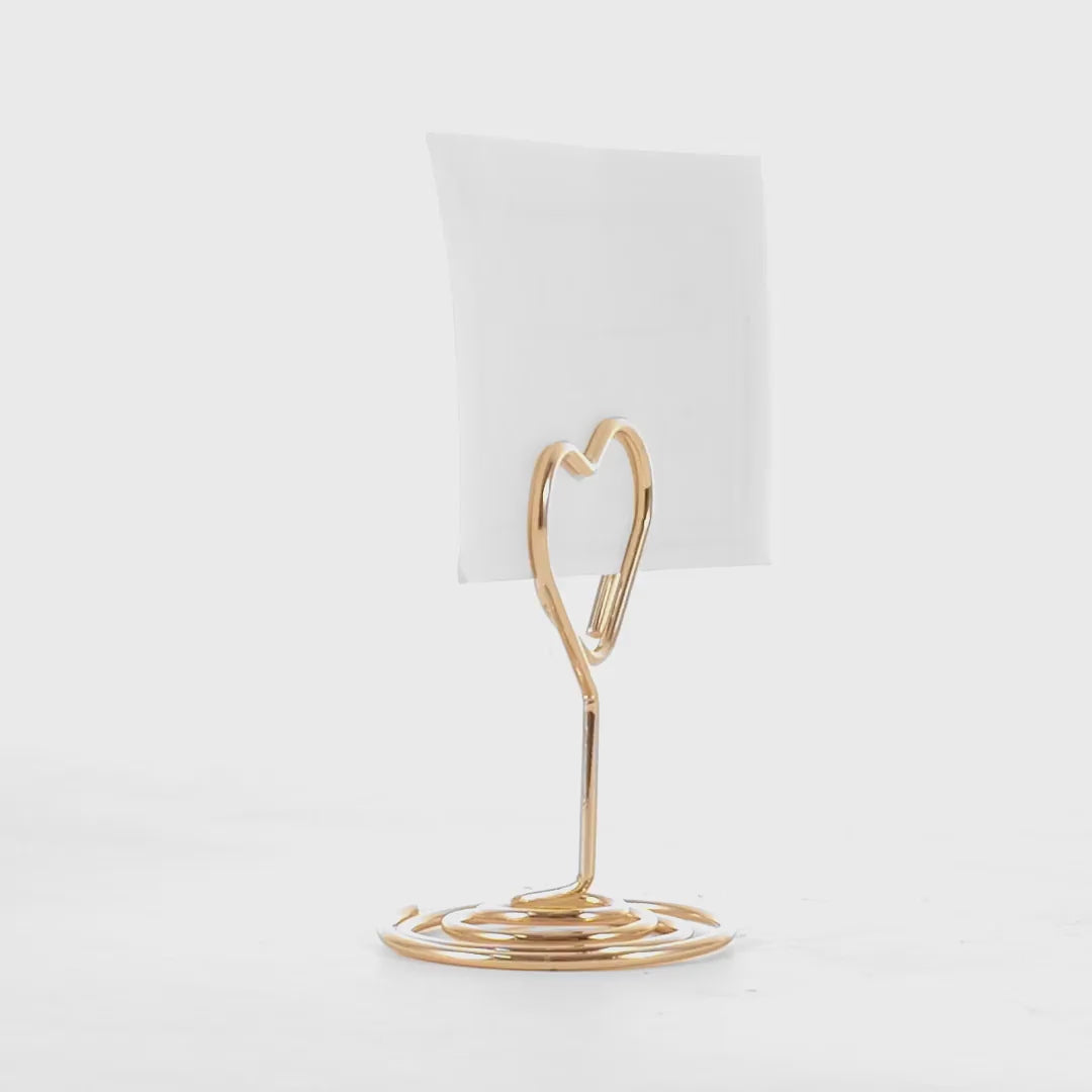 Placeholder metalic in forma de spirala este o alegere practica pentru organizarea meselor la evenimente. Baza  stabila permite sustinerea cartonului cu nume, nr de masa sau a altor mesaje. Se integreaza usor in orice decor, de la evenimente elegante pana la mese casual.